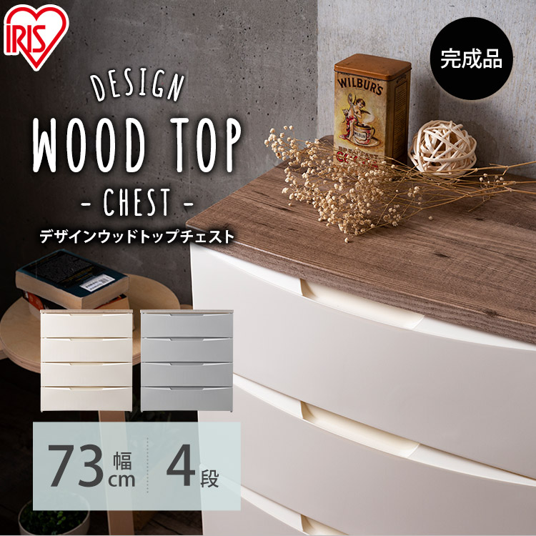 ■チェスト 4段 幅73cm デザインウッドトップチェスト ランドリーチェスト 木天板 収納 収納ケース 衣類収納 完成品 DW-724 アイリスオーヤ