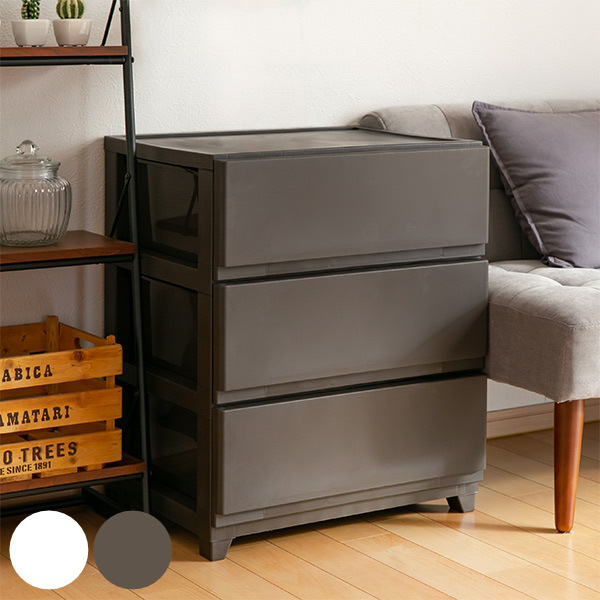 ■チェスト 幅54×奥行41.5×高さ66.1cm 3段 ワイド ( プラスチック スリムチェスト スリム タンス 引き出し 白 茶 プラスチックチェスト