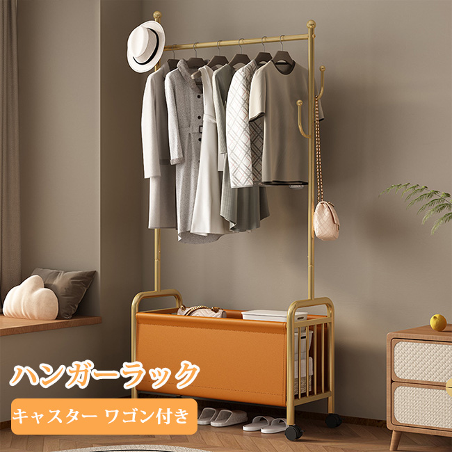 ■パイプハンガー ハンガーラック カゴあり キャスター付きラック コートラック ハンガー 洋服掛け コート掛け クローゼット ラック 衣類収