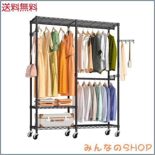 ◆商品名:ハンガーラック 頑丈 洋服ラック 大容量 キャスター付き クローゼット ワードローブ ハンガーラック2段 洋服掛け 防サビ加工 組み立て簡