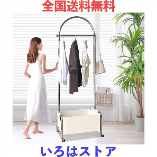 ◆商品名:susunnus ハンガーラック 半円形 スリム ステンレス製 収納ケース&キャスター付き 2段式 洋服掛け 服収納ラック 組立簡単 頑丈 幅60cm