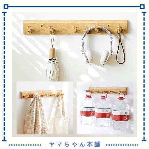 ■aleawol ウォールハンガー 5連 壁取り付け式コートラック 天然竹製 木製 壁掛けフック 収納フック 洋服掛け コート掛け 帽子掛け 高耐荷