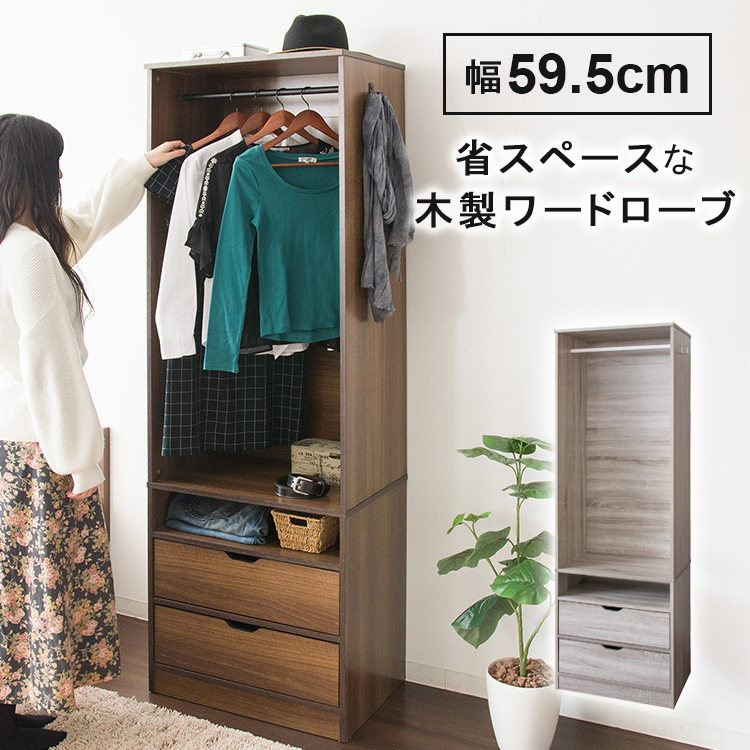 ■ワードローブ スリム 壁面収納 引出し付 ハンガーラック 幅60cm ( コートハンガー 洋服掛け ハンガー掛け ラック 洋服収納 スリムタイプ