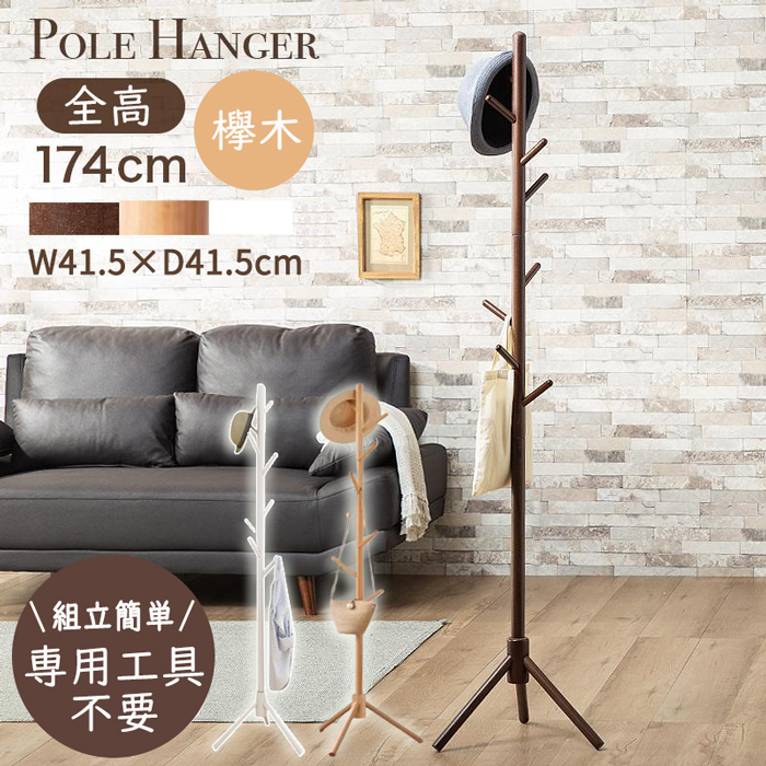 ■「クーポン配布中」「即納」ポールハンガー ハンガーラック 省スペース 収納ハンガー 天然木 玄関 シンプル パインハンガー 洋服掛け 洗