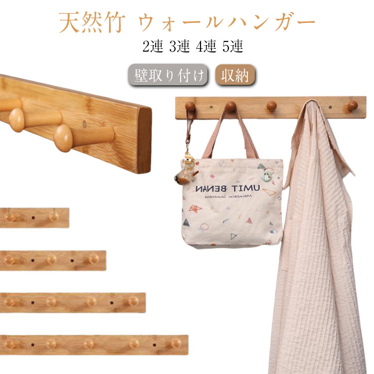 ■ウォールフック 木製 ウォールハンガー 壁掛けフック 天然竹 コートハンガー コート掛け 帽子掛け 洋服掛け かばん掛け 壁付けハンガー 2