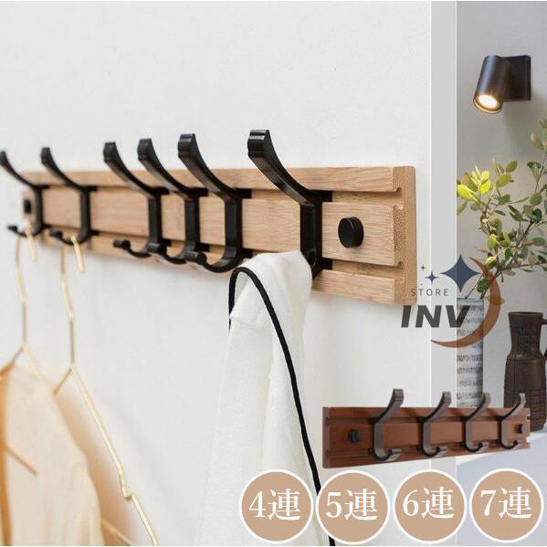 ■ウォールフック 木製 壁掛け フック ハンガー 小物収納 収納フック 4/5/6/7フック 整理整頓 コート掛け 帽子掛け 洋服掛け 省スペース 玄