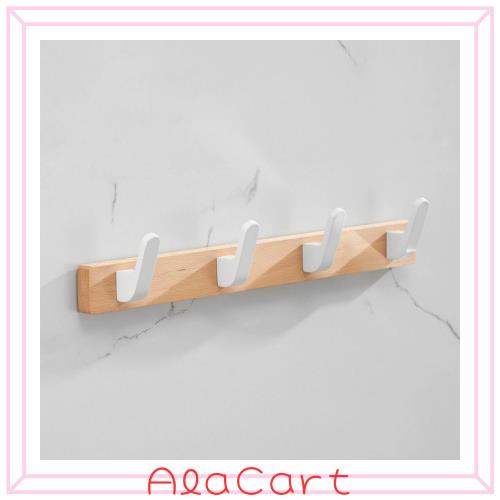 ■doandfa 壁掛けフック ウォールハンガー 帽子掛け 洋服掛け 収納フック 玄関 浴室 寝間 台所 木製 天然木 (ブナ, 4連)