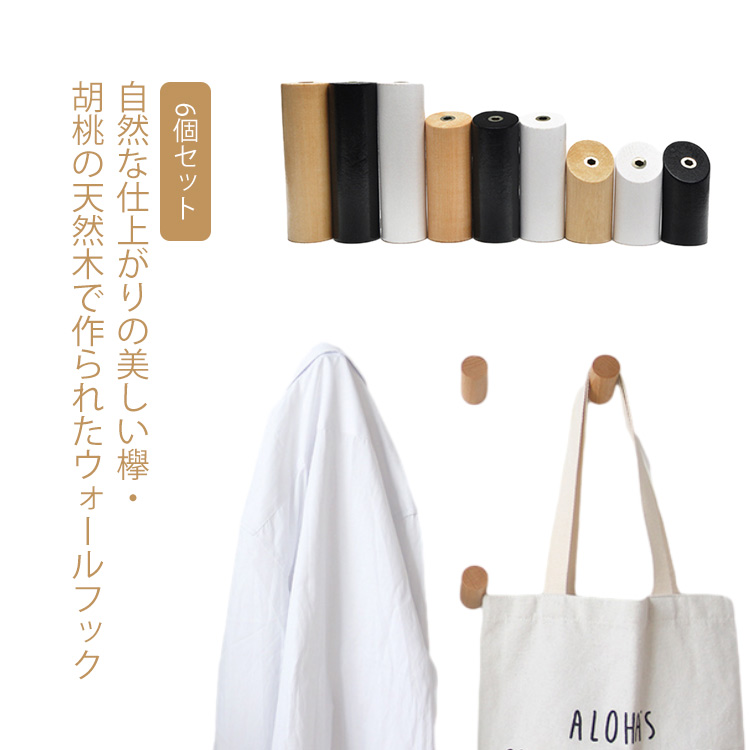 ■壁掛けフック 木製 強力フック ウォール ハンガー 穴目立たない 6個セット 北欧 ドアフック コート フック 帽子掛け 洋服掛け ズボン 衣