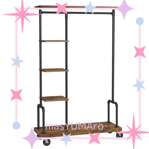 ■VASAGLE ハンガーラック ヴィンテージ風 ラック付き 洋服掛け 衣類収納 幅103.5×奥行40CM スタイルハンガー マルチハンガーラック 木製