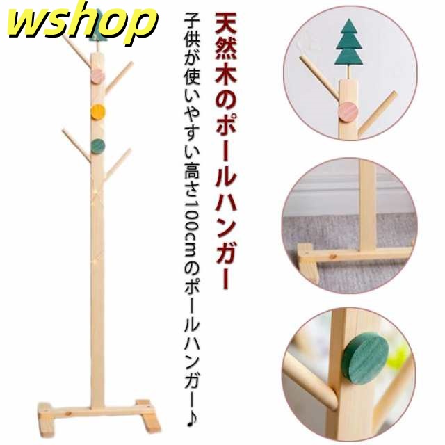 ■【wshop 】木製 おしゃれ 高さ約100cm 子供 北欧 可愛い キッズ 洋服掛け 通園 子供用 天然木 ラック 子供部屋 玄関収納 コート掛け 帽子