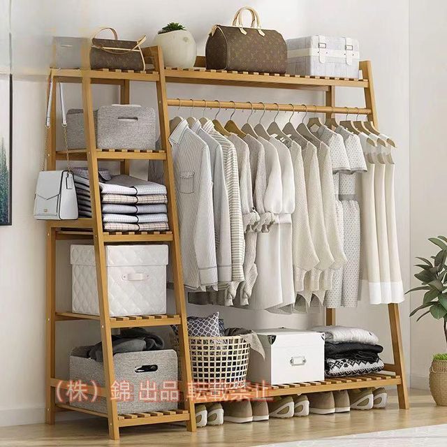 ■ハンガーラック 天然竹製 ワードローブ クローゼットポールハンガー 強力な耐荷重能力 おしゃれ 洋服掛け スタンド 押入れ収納 錦シング