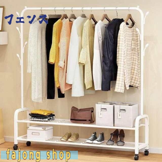 ■ハンガーラック ワードローブ 洋服掛け パイプハンガー 組立簡単 物干し キャスター付 防サビ 防水 衣類収納 軽量 多機能 お洒落