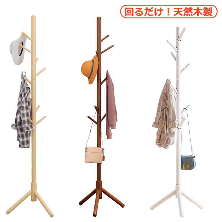 ■スタンド式 多機能ハンガー ポールハンガー ハンガーラック コートハンガー ポールスタンド スリム 洋服掛け 衣類掛け 木製 天然木 おし