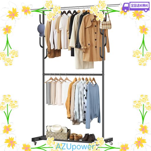 ■VICERII ハンガーラック 多機能収納 おしゃれ 洋服ラック 衣類収納 頑丈 防サビ キャスター付き 洋服掛け (ブラック, 二重式)