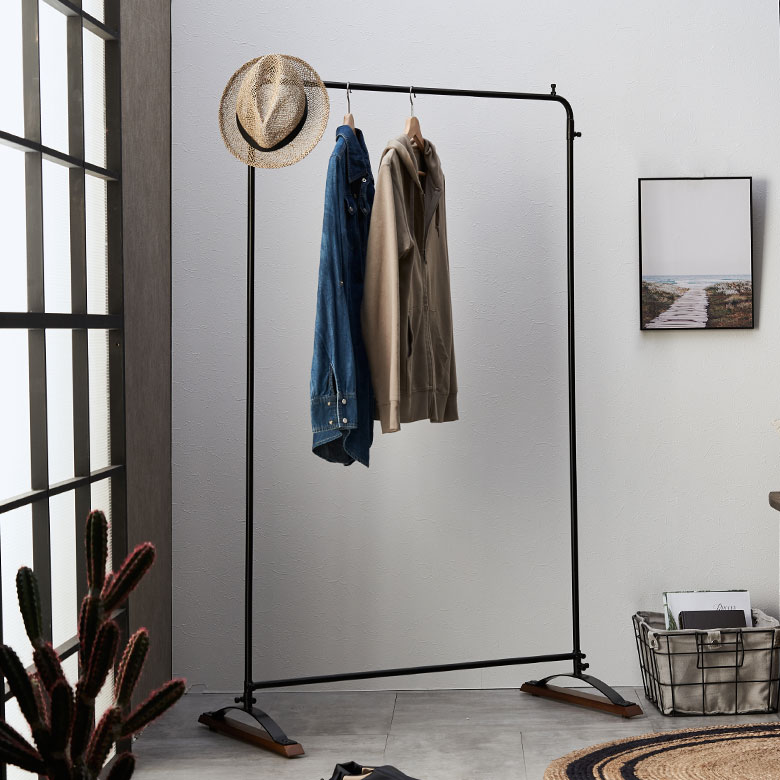 ■ハンガーラック ハンガー コートハンガー 約 W 95cm D 51cm H 154cm 天然木 スチール ブラウン 洋服掛け ポールハンガー ポールラック 玄
