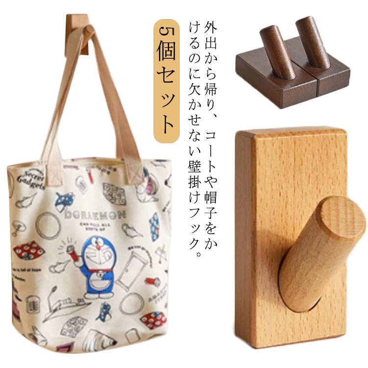 ■ウォールハンガー 洋服掛け 木製 壁掛けフック 壁掛けフック 洋服 5個セットク コート掛け 強力 帽子 ボウシ フック 木製フック 帽子掛け