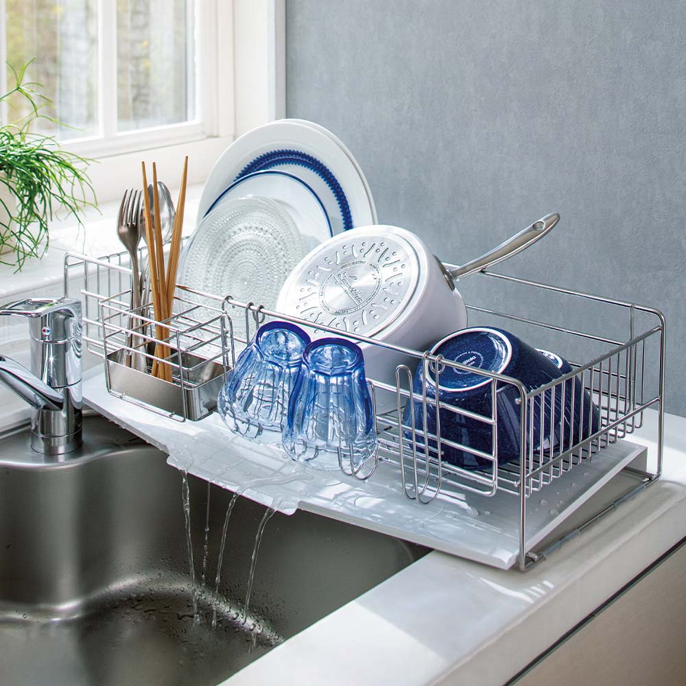 設置幅23cm×奥行58cm!奥行スペースを活かして大容量。dinosが企画開発したロングセラー水切りシリーズの定番レギュラータイプです。18-8ステンレス製なのでずっと美しいまま。シルバーで統一できる「ステンレストレー」と水垢が付きにくい「フッ素加工ステンレストレー」から選べます。【日本製・燕三条】