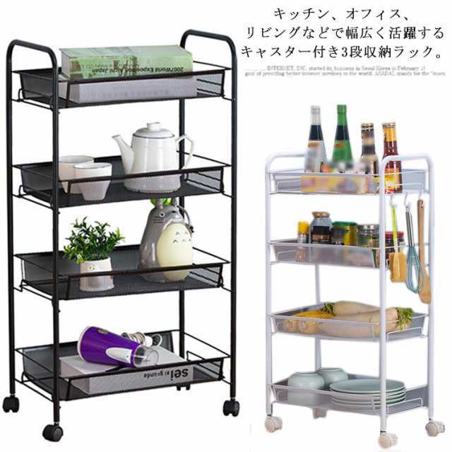 ■キッチンワゴン キャスター付き ワゴン ラック 収納 マルチワゴン サイドラック 2段 3段 4段 移動可能 キッチン 洗面所 デスク 透明 おし