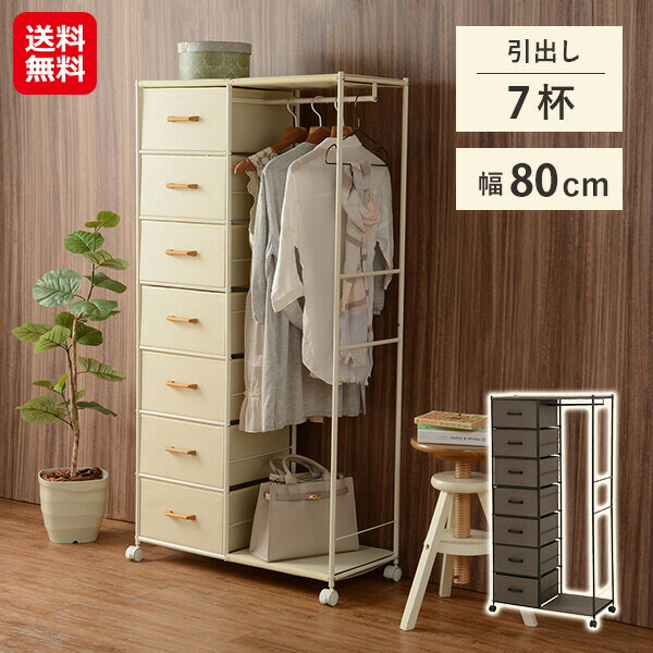 ■【ハンガーラック 幅80cm 引き出し7杯 KHR-3158】【送料無料】 コートハンガー おしゃれ スリム 薄型 タンス チェスト 7段 木製 キャスタ