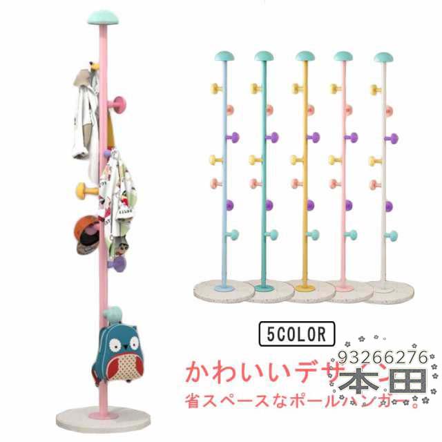ポールハンガー 倒れない 子供 コートハンガー おしゃれ かわいい スリム 倒れない ポールスタンド 洋服かけ 子供ポールハンガー 玄関 リビング 子供部屋 キッズハンガー 片付け カラフル