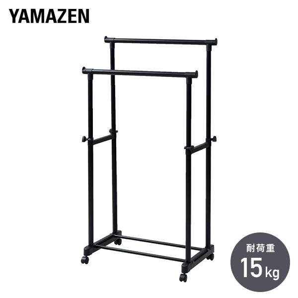 ■ハンガーラック ダブル キャスター付き MKS-W オールブラック パイプハンガーラック コートハンガー ワードローブ クローゼット 収納
