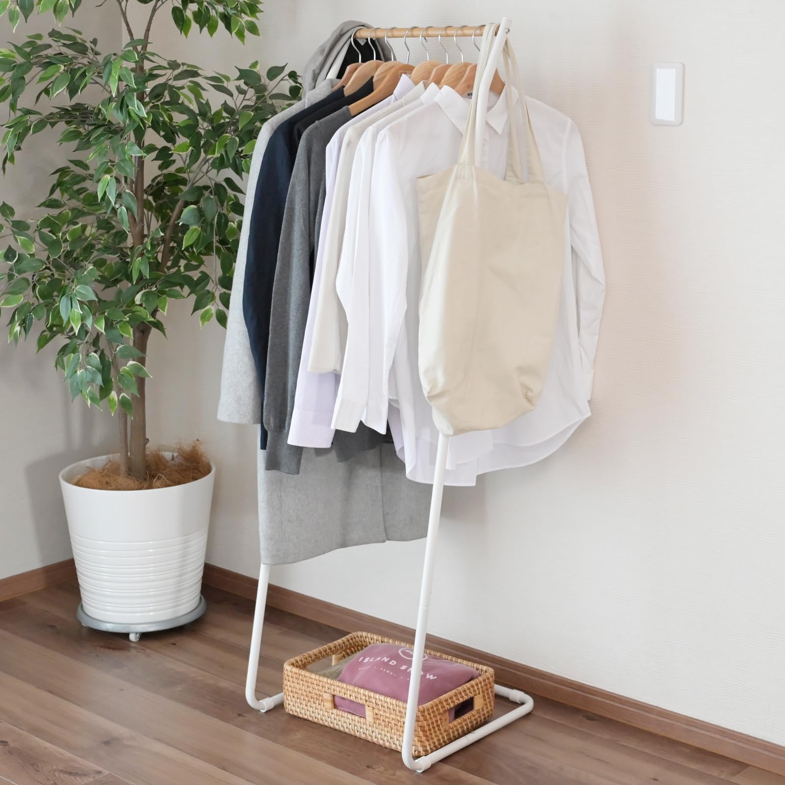 ■フレームポールスタンド(ホワイト/白)【3個セット】 コートハンガー/アイアン/木製/天然木 /整理 収納 /衣類整理 収納 /スリム/コンパク