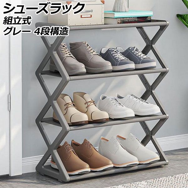 シューズラック グレー 4段構造 デザイン1 組立式 靴で散らかった玄関スペースをすっきり整頓 AP-UJ1114-GY シューズボックス 下駄箱 靴入れ 靴箱 靴棚 靴ラック オーガナイザー 組立て 靴 クツ くつ シューズ 棚 たな ラック 収納 片付け 整理 整頓 インテリア 家具 プラスチック 金属 組み立て 組立 通気性 風通し 湿気 玄関 賃貸 一人暮らし ひとり暮らし 寮 部屋 キャビネット 箪笥 タンス クローゼット 押し入れ ワードローブ パントリー 物置き コンパクト スリム 薄型 省スペース 日用品 雑貨 灰 GRAY 4段 4573659925551 507725110