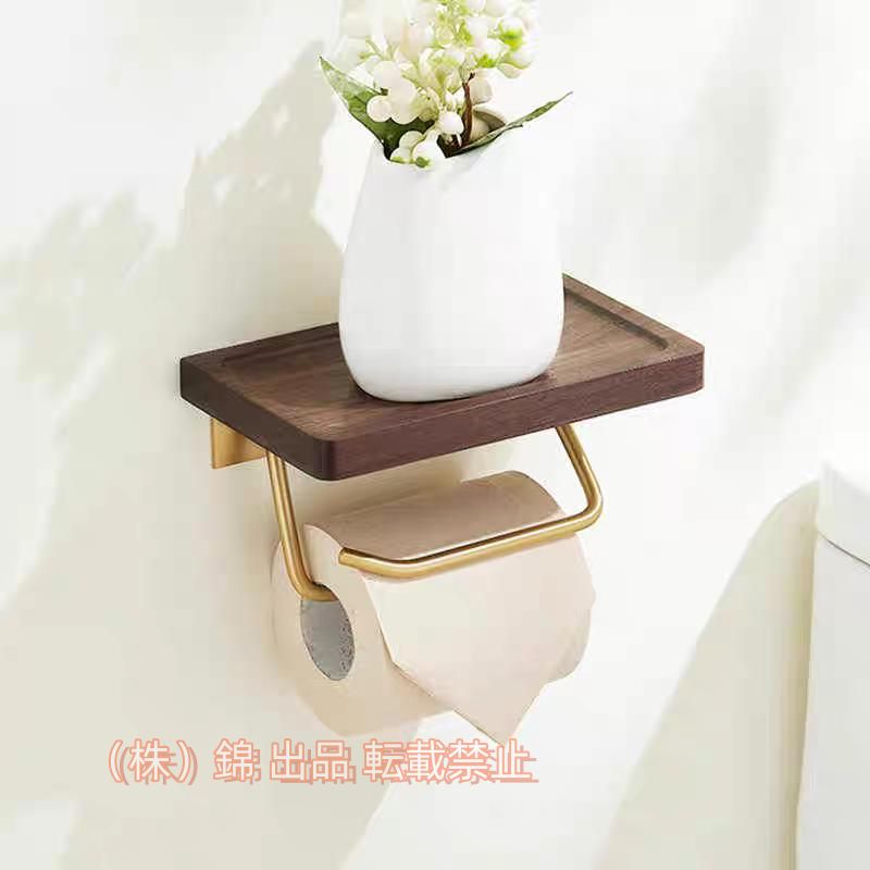■トイレットペーパーホルダー 真鍮製ダブルフック アンティーク 北欧 木製 アイアン ブラウン ペーパーホルダー 棚 棚付き 株式会社錦 小