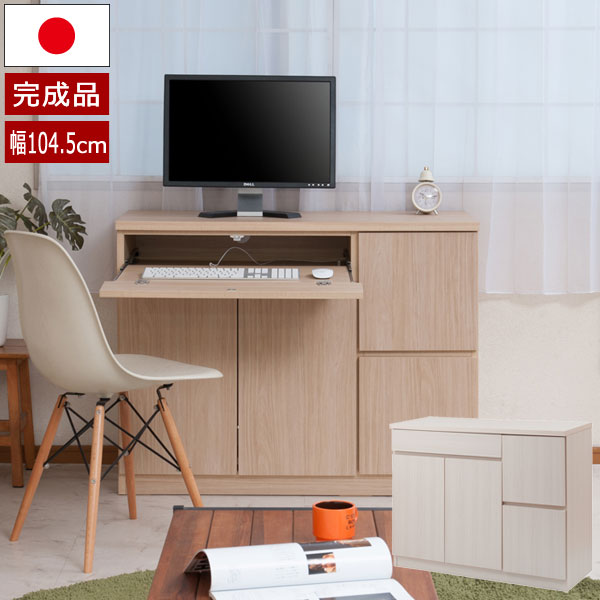 ■パソコンデスク PCデスク 幅104.5cm 板扉 スクエア キャビネット リビング収納 プリンター収納 日本製 完成品 TE-0140/TE-0146-NS
