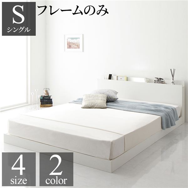 ■ベッド 低床 ロータイプ すのこ 木製 LED照明付き 棚付き 宮付き コンセント付き シンプル モダン ホワイト シングル ベッドフレームのみ