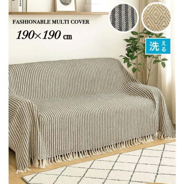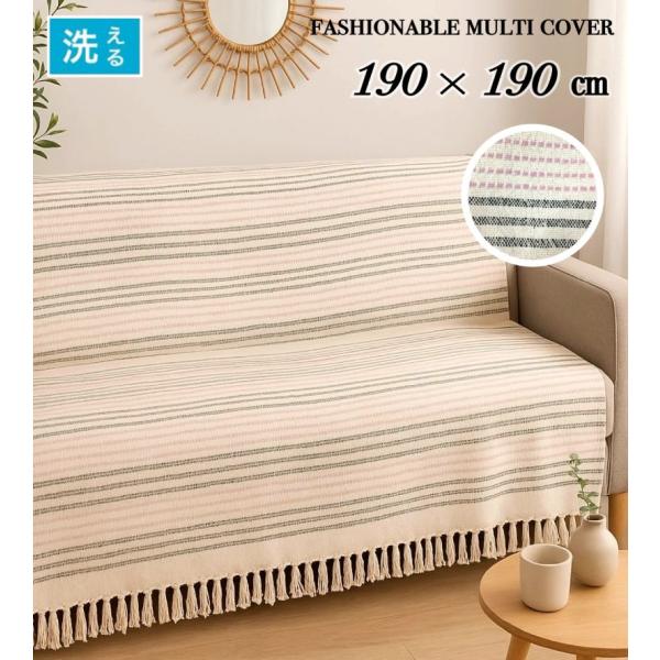 ■マルチカバー 北欧 ベッド おしゃれ キャンプ ブランケット 綿混 ベージュ ピンク かわいい 大人シック 手洗いOK 約190×190cm 送料無料