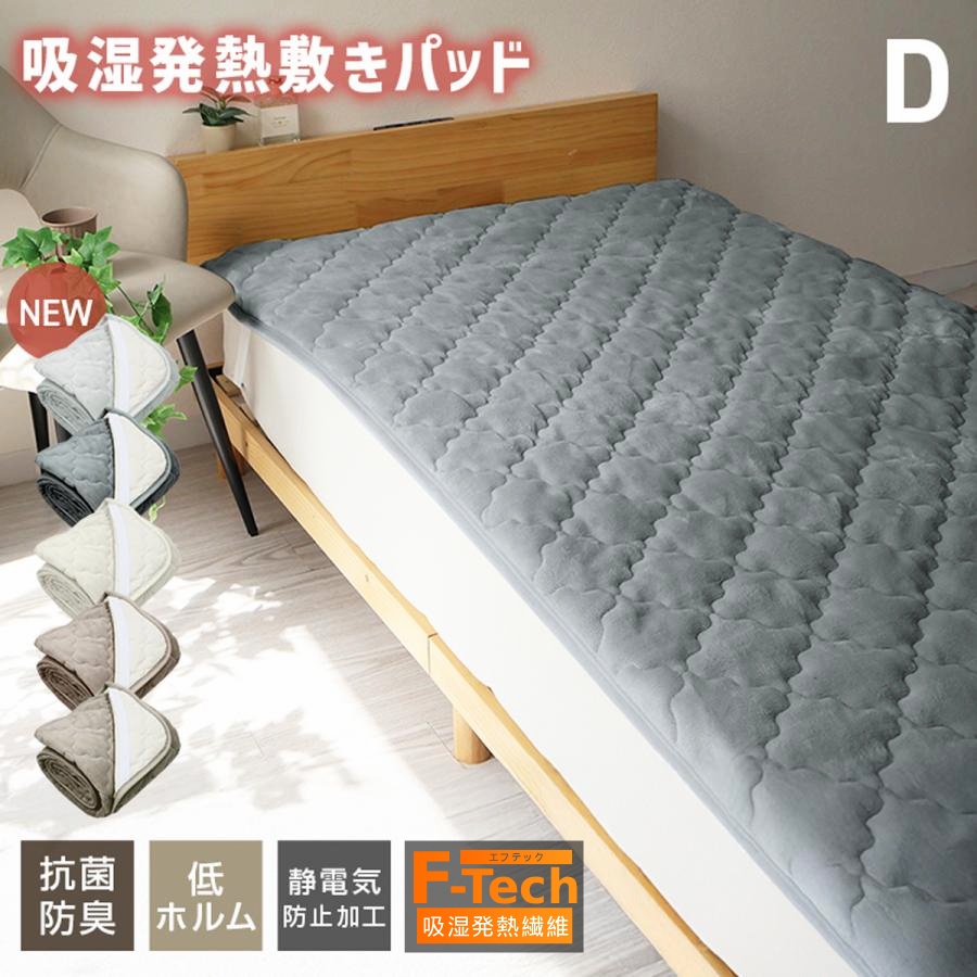 ■敷きパッド ダブル +2℃ 3層構造 F-Tech 吸湿発熱素材 あったか ふんわり フランネル 抗菌 防臭 吸湿 発熱 保温 洗える 抜群の肌触り 140
