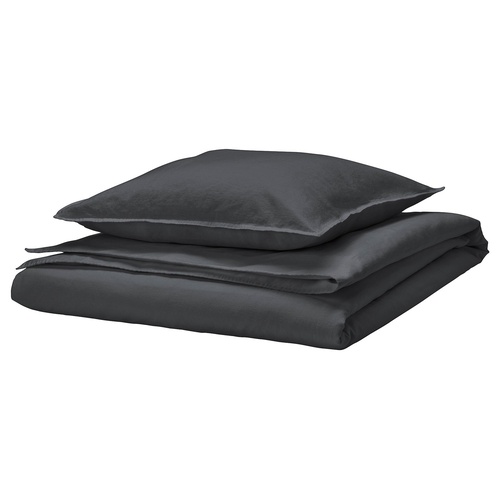 ■IKEA イケア 掛け布団カバー&枕カバー チャコール 50×60cm m00611388 RUNDHAGTORN ルンドハーグトルン