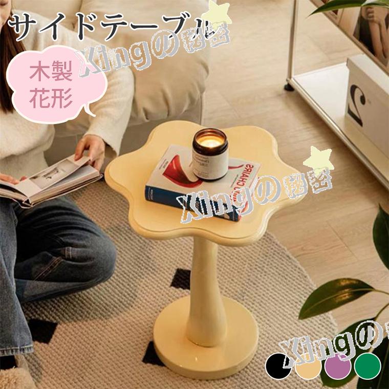 ■サイドテーブル ソファサイドテーブル 木製 フラワー 花 花形 モダン レトロ シンプル キュート 韓国インテリア 天然木 小さい 寝室