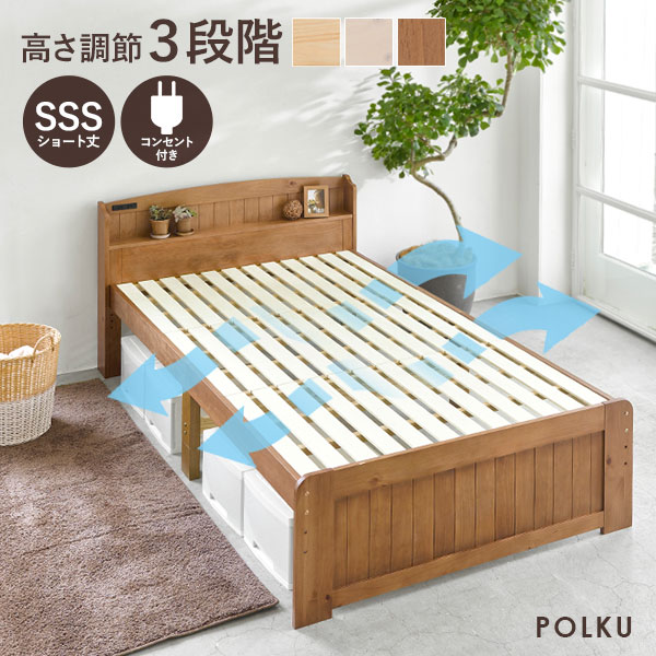 ■すのこベッド シングル 布団 スノコベッド コンセント フレーム 宮付き 3段階 高さ調節 木製 天然木 収納 おしゃれ 白 かわいい 北欧 カ