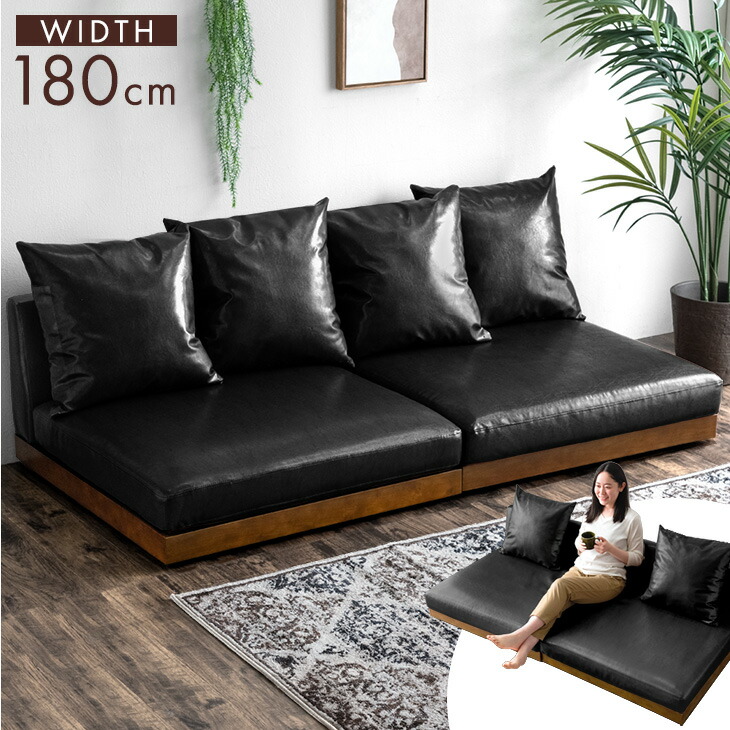■【本日P5%還元】 ヴィンテージ フロアソファ 幅180cm 3人掛け レザー調 ソファ ウッドフレーム ローソファ ソファー ローソファー フロア