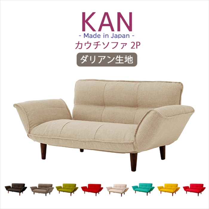 ■カウチソファ 2人用 リクライニング ソファ ダリアン生地 コンパクト ベーシックソファ 樹脂脚 取り外し可能 ロー ソファー KAN 和楽