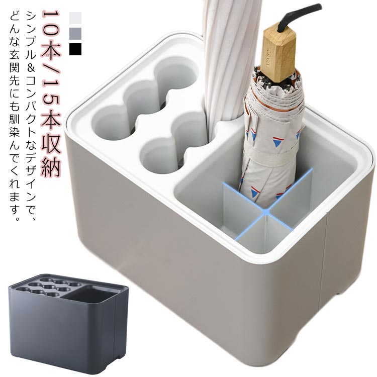 ■シンプル りたたみ傘 長傘 北欧 倒れない アンブレラホルダー 10本/15本収納 スリム 黒 長方形 グレー 白 玄関 収納 仕切り 可愛い 業