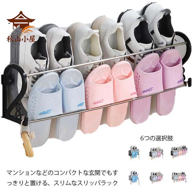 ■スリッパ立て スリッパラック フレーム 引っ掛け式 スリム スリッパ収納 かわいい ルームシューズ 玄関 収納 ベランダ お風呂 棚 扉 傘立