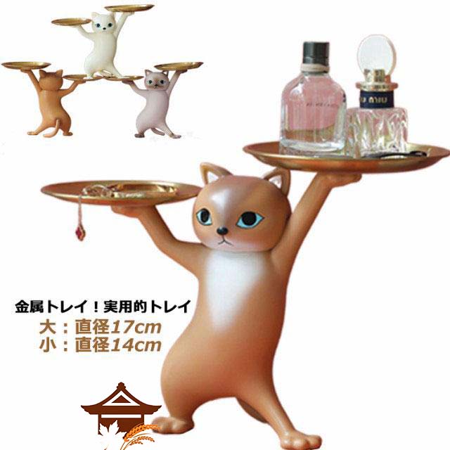 猫のトレー トレイ コースター スタンド 鍵置き トレー 置物 香水 サングラス グラスや瓶置きにも使えます ねこ ネコ かわいい 玄関 収納 皿を捧