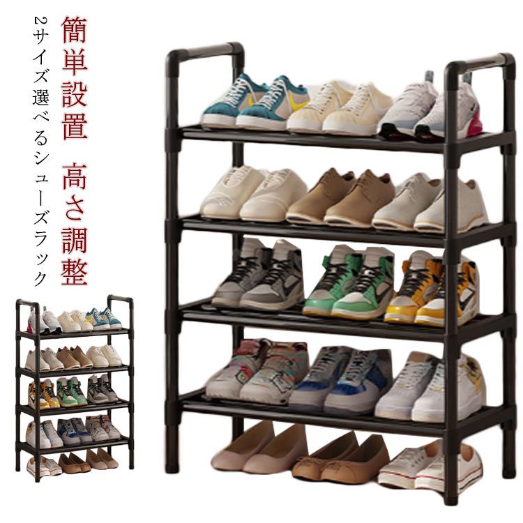 ■簡易シューズラック L 4段 省スペース S スリム 靴 くつ 靴箱 下駄箱 シューズボックス シューズケース 一人暮らし 玄関 収納 2サイズ 整