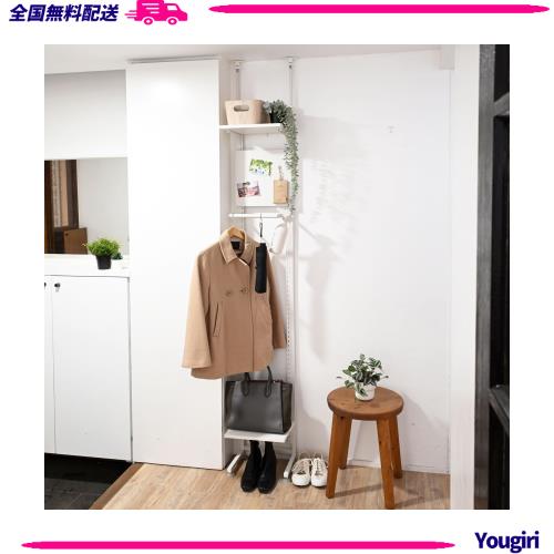 ■[山善] 突っ張り ラック ハンガーラック スリム 玄関 収納 省スペース (棚/パネル/ハンガーバー付) マグネット使用可 幅32×奥行28×高さ