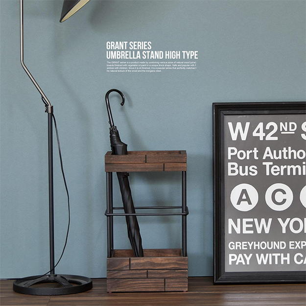 ■傘置き おしゃれ GRANT 傘立てハイタイプ GRUM-280H 受け皿付き スタイリッシュ ヴィンテージ風 スリム コンパクト 北欧風 玄関 収納 天