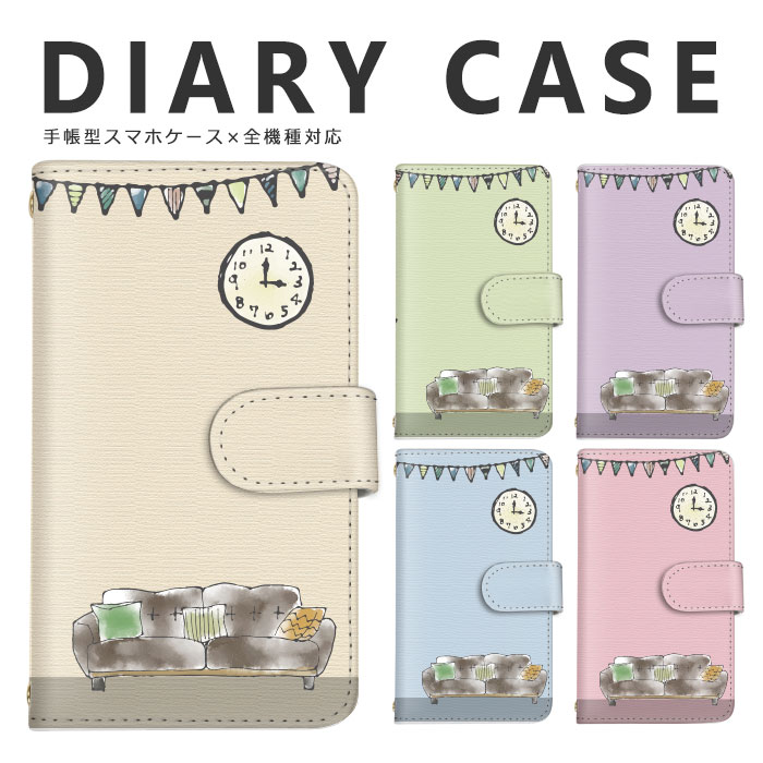 ■スマホケース 手帳型 ケース 手帳型ケース 全機種対応 水彩 時計 ソファ ライト テーブル Rakuten Mini Pixel10 Pro XL Xperia 1 VII BAS