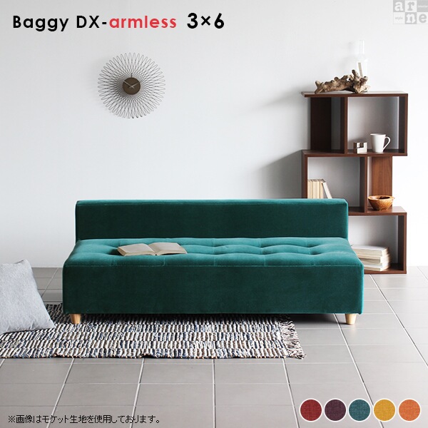 Baggy DX-アームレス 3×6 リゾートサイズ:約幅1460 奥行き800 高さ510 mm座面高さ:290 mm脚の高さ:60 mm材質:[本体]ウレタンフォーム [脚]天然杢[張地]ポリエステル100%重量:約23kgカラー:5カラーからお選び下さい。ブランド:arne日本製/完成品カバーの取り外し不可オーダー品のため、キャンセル・変更にはお届け前でも生産手配が済んでいるためキャンセル料(商品代金の50%)を頂戴いたします。送料無料※離島は送料別途お見積もり。【ご注意】離島・郡部など一部配送不可地域あり。配送不可地域の場合は通常の配送便での玄関渡し。建物の形態(エレベーターの無い3階以上など)によっては別途追加料金を頂戴する場合あり。吊り上げ作業などが必要な場合についても追加料金はお客様ご負担です。サイズの確認不十分などの理由による返品・返金は不可。ご注文前に商品のサイズ、搬入経路の幅・高さ・戸口サイズ等充分にご確認願います。0000a48866/0000a48867/0000a48868/0000a48869/0000a48870/