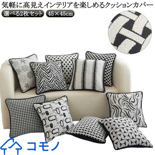 【選べる2枚セット】 新生活 高級感 洗える シェニール 厚手 【選べる2枚セット】 クッション 北欧 おしゃれ 45×45cm ソファ ベッド リビング モノトーン 模様替え 毛玉が起きない オシャレ ドット柄 チェック柄 ゼブラ