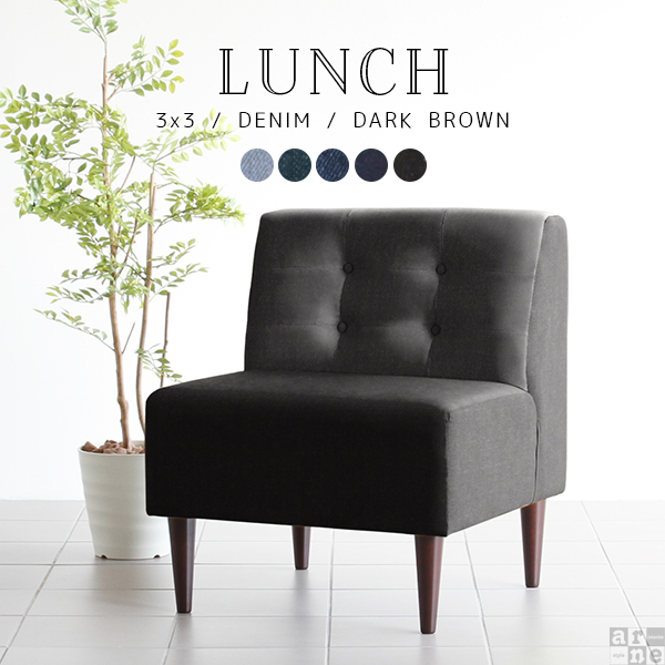 ■ソファ デニム シングル ソファー 北欧 1人掛け 一人掛け 西海岸 おしゃれ アームレス 肘なし ダイニング Lunch 3×3アームレス/脚DB □