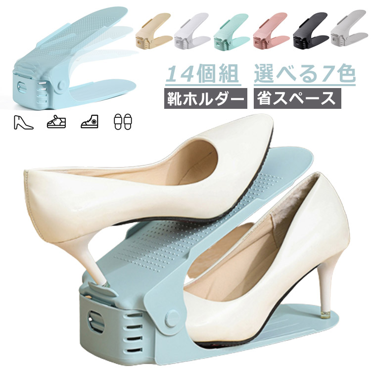■14個組 シューズホルダー くつホルダー 靴ホルダー 高さ調節 靴 収納 靴箱整理 下駄箱 玄関収納 スリム 省スペース おしゃれ すき間収納