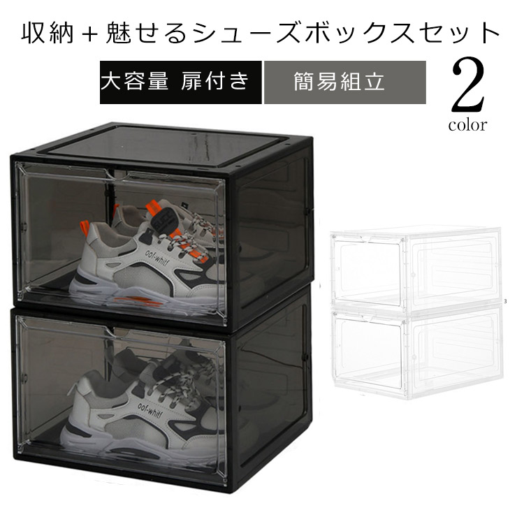 ■防塵 シューズボックス クリア 組み立て式 大容量 扉付き スリム 靴箱 玄関収納 下駄箱 2個セット 男女兼用 収納ボックス おしゃれ 積み