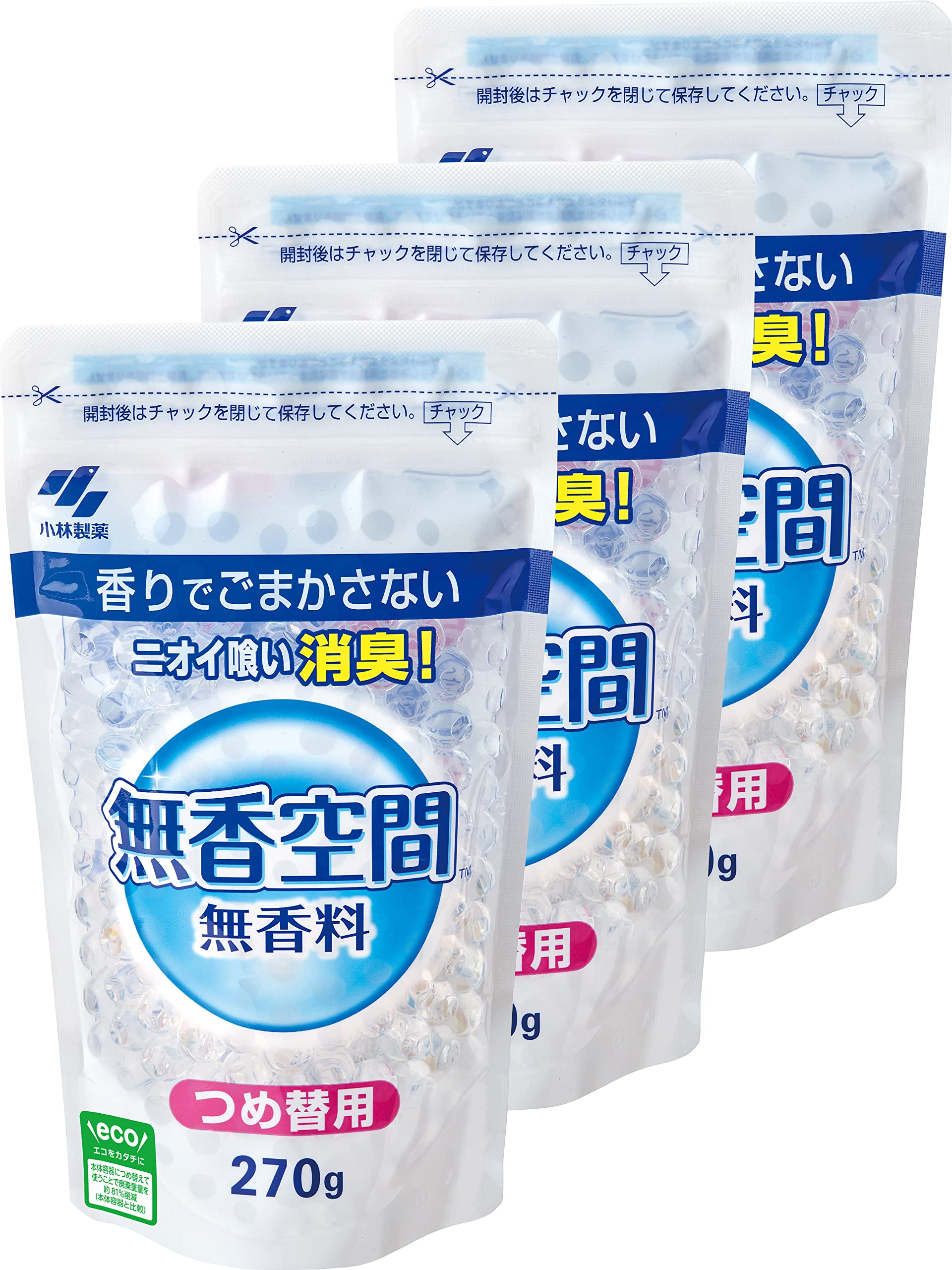 ■無香空間 置き型 消臭剤 【 消臭ビーズ でしっかり 消臭 】部屋 玄関 靴箱 下駄箱 クローゼット トイレ ペット のニオイにも! 小林製薬 (